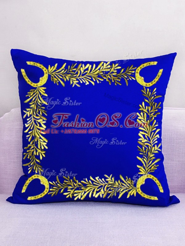 Floor Length Royal Blue Vestidos de Quinceanera Satin and Organza Sleeveless Beading and Embroidery
