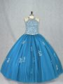High Quality Green Ball Gowns Embroidery and Ruffles 15th Birthday Dress Lace Up Organza Sleeveless Floor Length