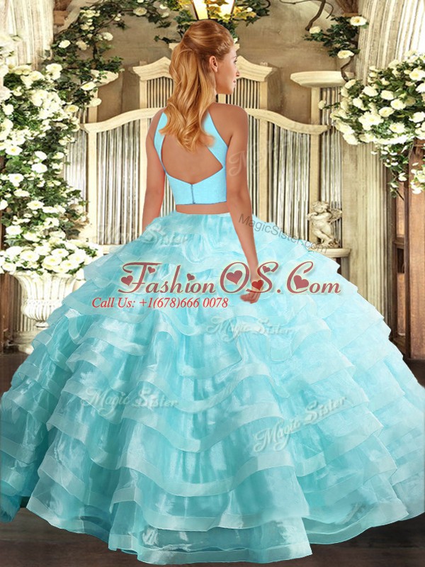 Lilac Sleeveless Organza Backless Quinceanera Dress for Military Ball and Sweet 16 and Quinceanera