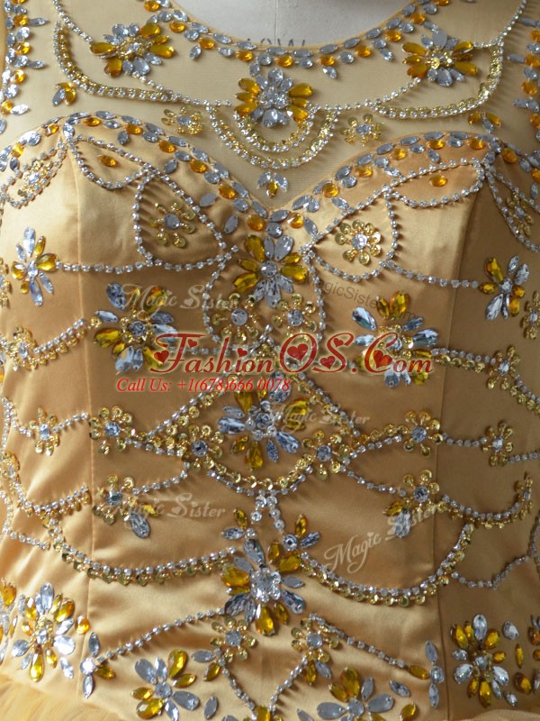 Gold Scoop Lace Up Beading 15th Birthday Dress Sleeveless