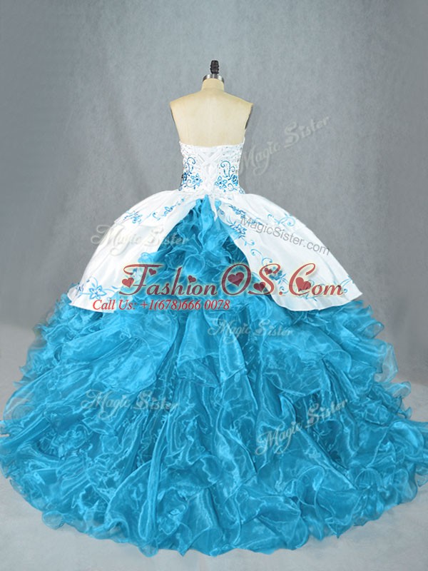 Sweetheart Sleeveless Lace Up Vestidos de Quinceanera Baby Blue Organza
