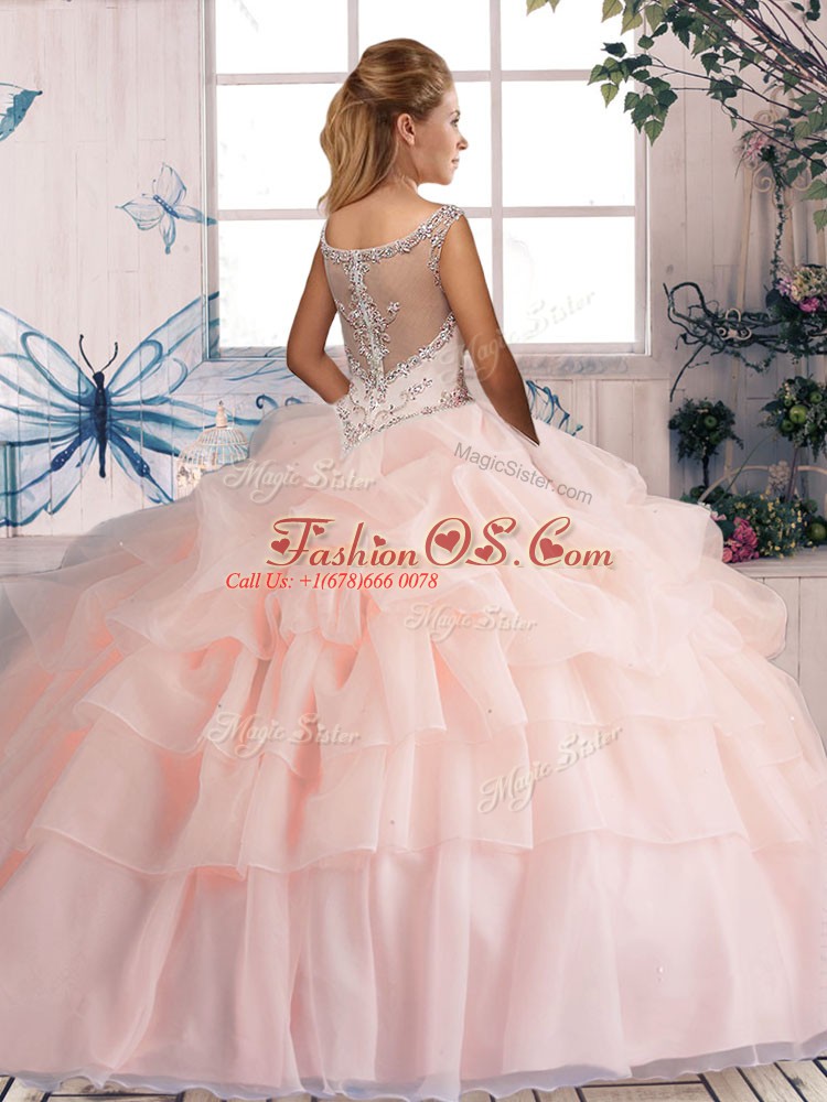 Brush Train Ball Gowns Quinceanera Gown Green Scoop Organza Sleeveless Zipper