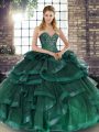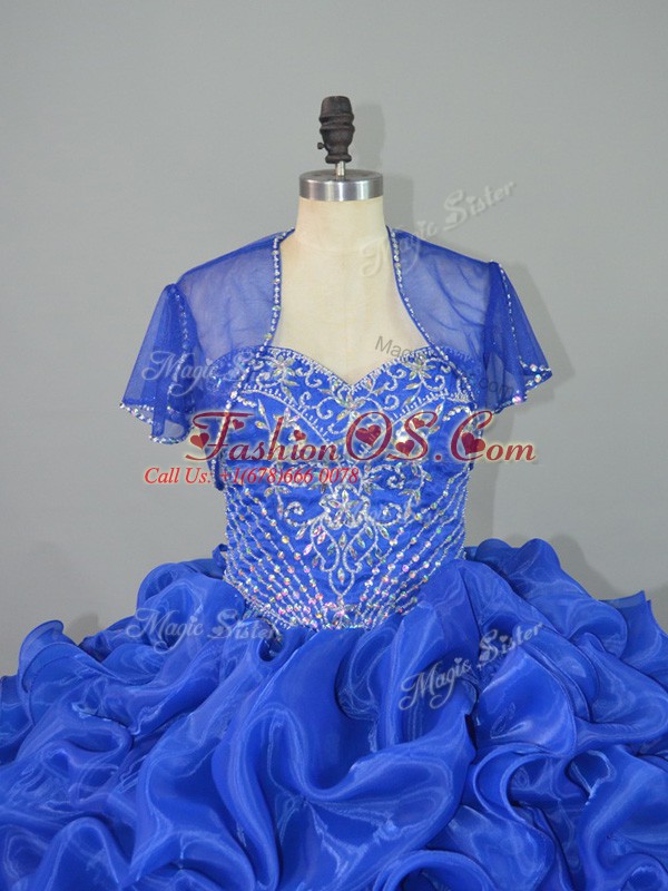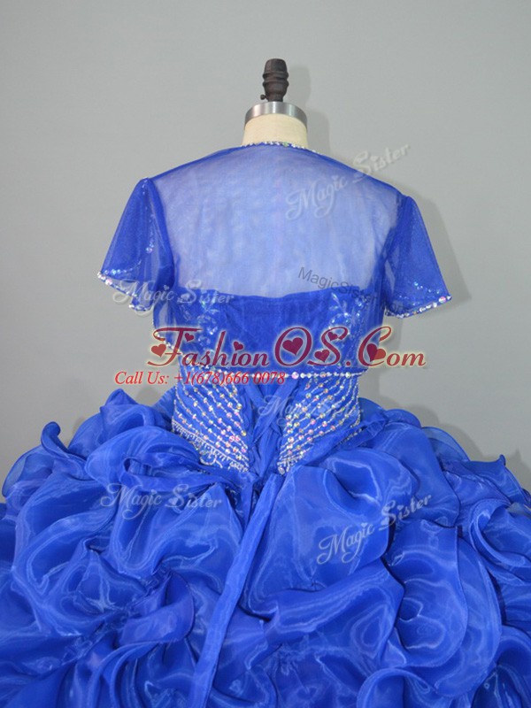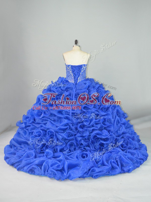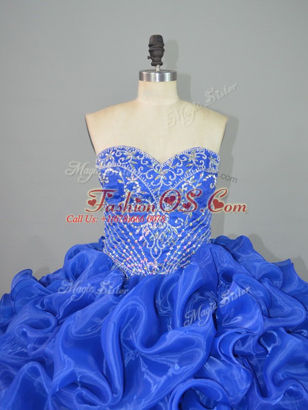 Blue Sleeveless Organza and Elastic Woven Satin Brush Train Lace Up 15 Quinceanera Dress for Sweet 16 and Quinceanera