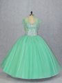 Organza Scoop Sleeveless Brush Train Lace Up Beading and Ruffles Sweet 16 Dresses in Purple