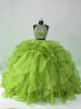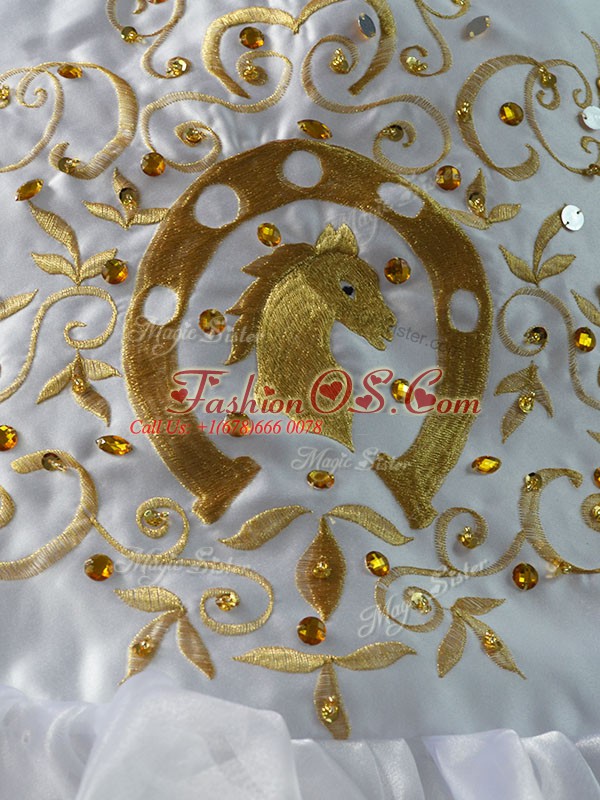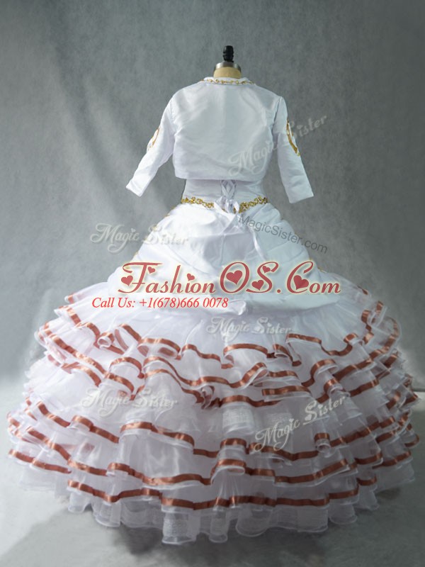 White Ball Gowns Organza Sweetheart Sleeveless Embroidery and Ruffled Layers Floor Length Lace Up 15 Quinceanera Dress