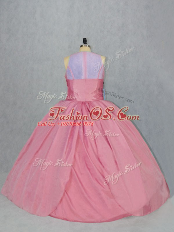 Amazing Taffeta Scoop Sleeveless Zipper Embroidery Vestidos de Quinceanera in Pink