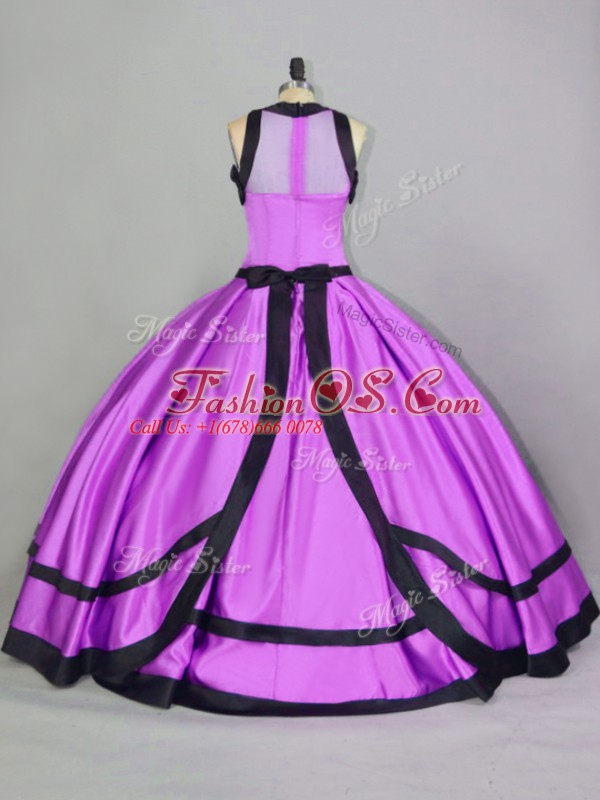 Lilac Ball Gowns Satin Scoop Sleeveless Ruching Floor Length Zipper Quince Ball Gowns