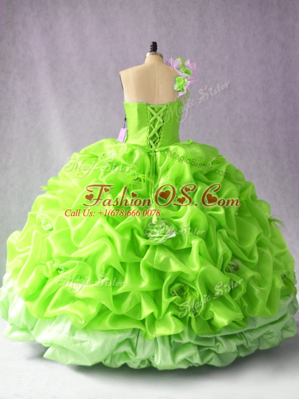One Shoulder Sleeveless Sweet 16 Dresses Floor Length Ruching and Hand Made Flower Organza