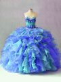 Customized Sweetheart Sleeveless Tulle Sweet 16 Dresses Beading and Ruffles Lace Up