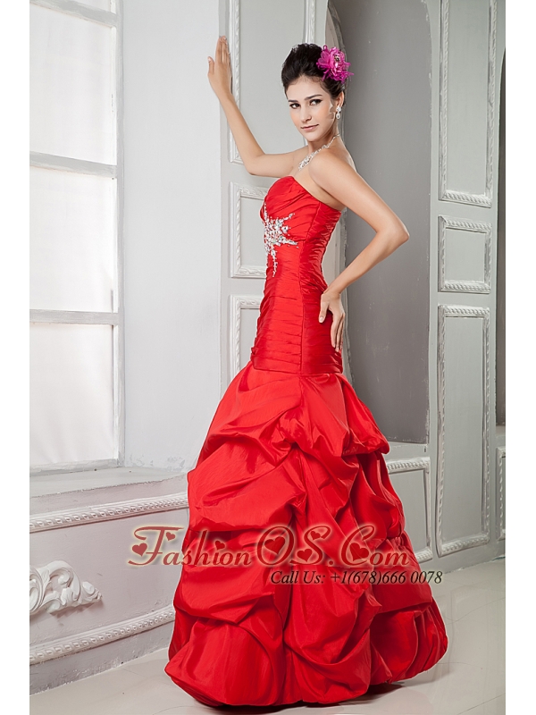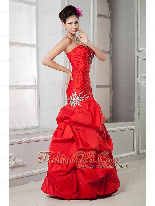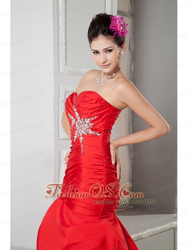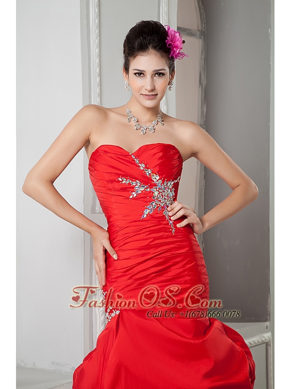 Sweet Red Mermaid Prom Dress Sweetheart Beading Floor-length Taffeta
