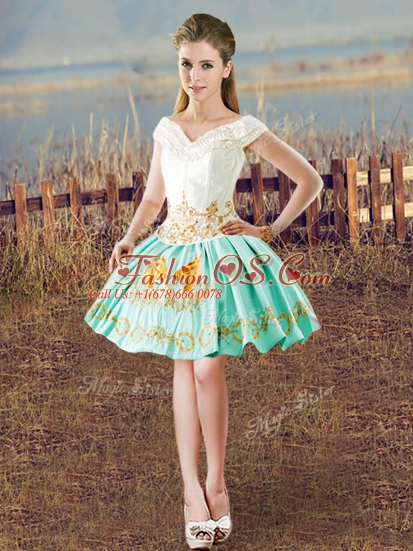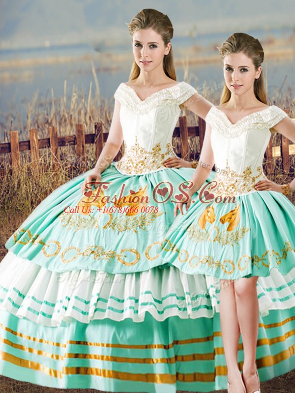Apple Green Satin Lace Up Quinceanera Gowns Sleeveless Floor Length Embroidery and Ruffled Layers