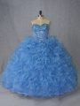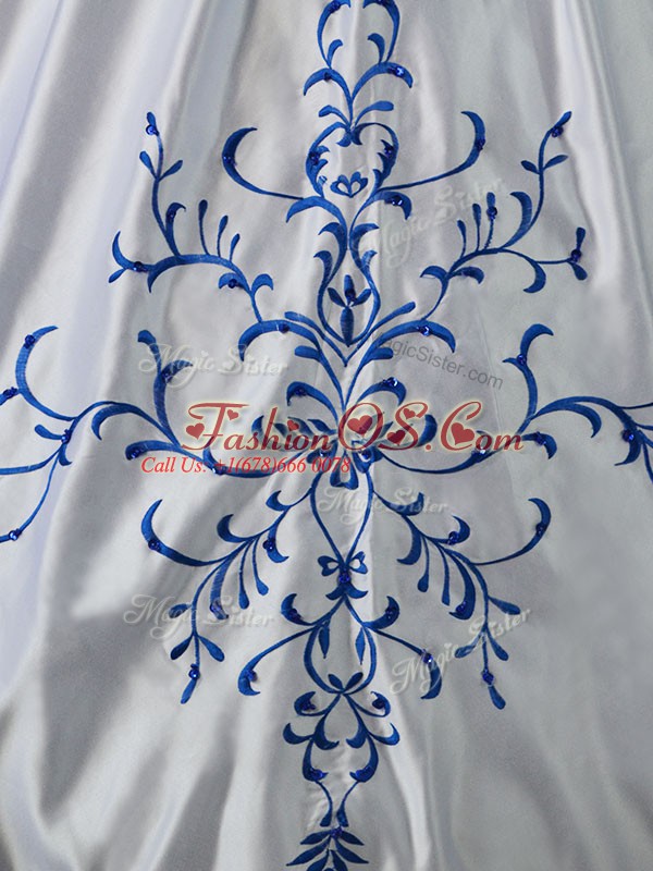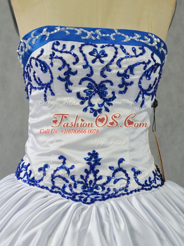 Strapless Sleeveless Lace Up Quinceanera Gowns Blue And White Satin