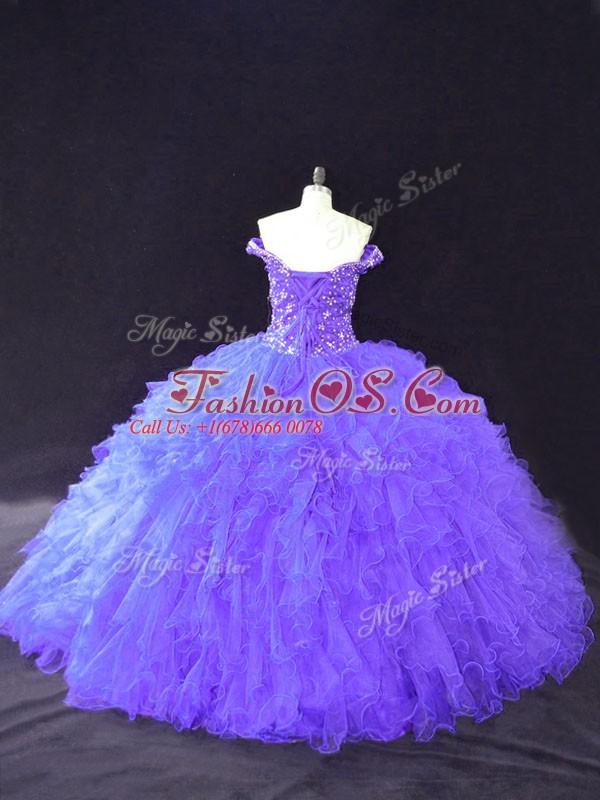 Spectacular Off The Shoulder Sleeveless Quinceanera Gown Floor Length Beading Purple Tulle