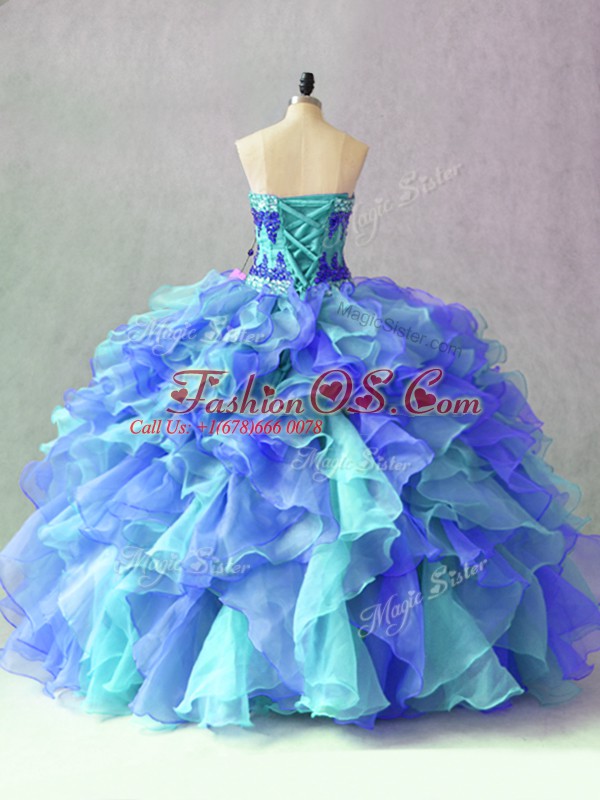 Multi-color Organza Lace Up Sweetheart Sleeveless Floor Length Sweet 16 Dress Beading and Appliques and Ruffles