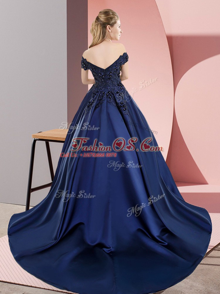 Best Sleeveless Lace Zipper 15 Quinceanera Dress with Blue Court Train