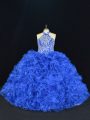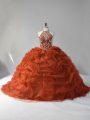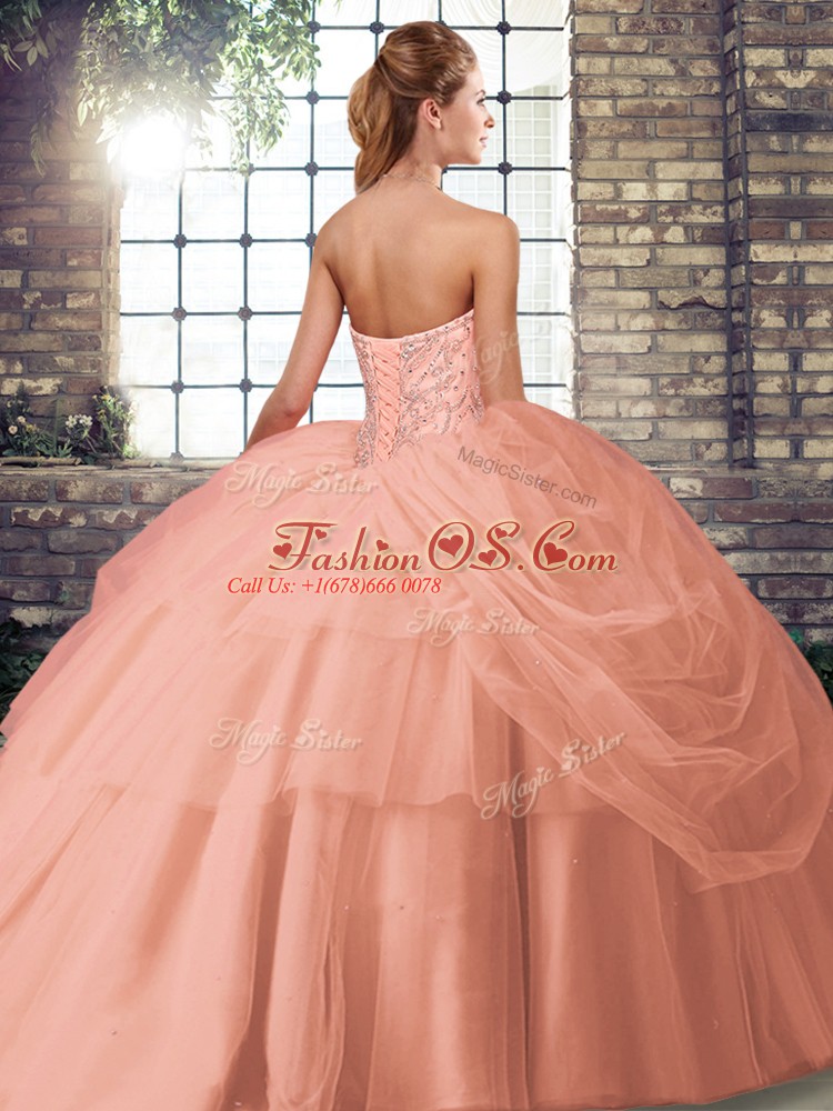 Red Ball Gowns Tulle Sweetheart Sleeveless Beading and Pick Ups Lace Up Quinceanera Gown Brush Train