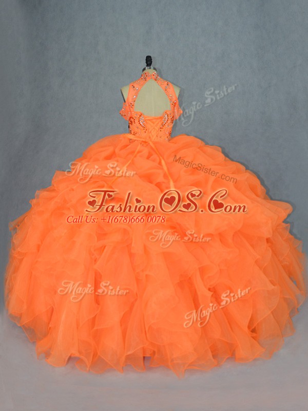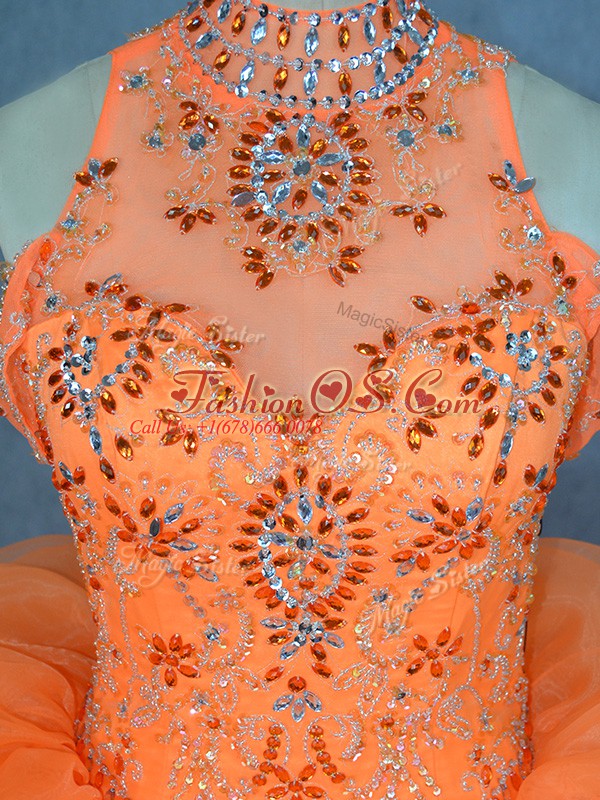 Floor Length Lace Up 15th Birthday Dress Orange for Sweet 16 and Quinceanera with Beading and Ruffles