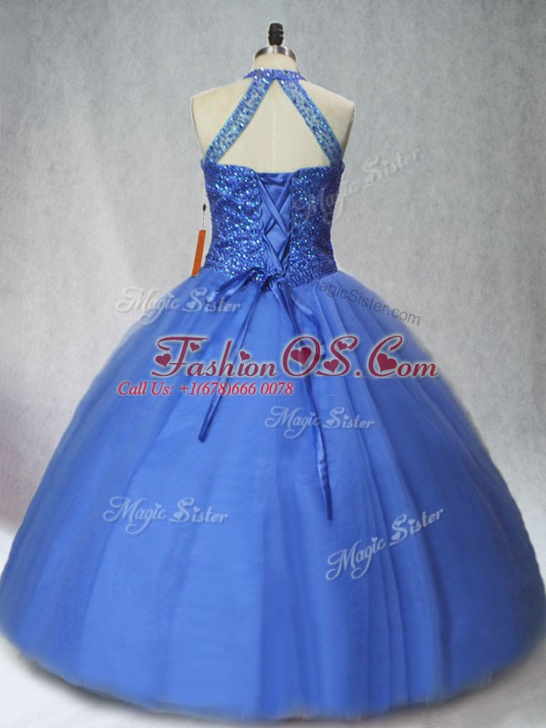 Tulle Sleeveless Floor Length Ball Gown Prom Dress and Beading