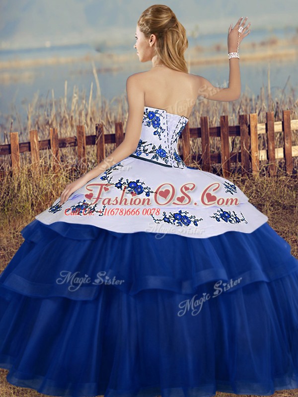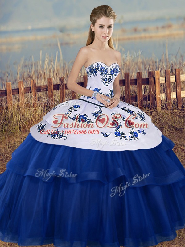 Beauteous Floor Length Royal Blue Vestidos de Quinceanera Tulle Sleeveless Embroidery