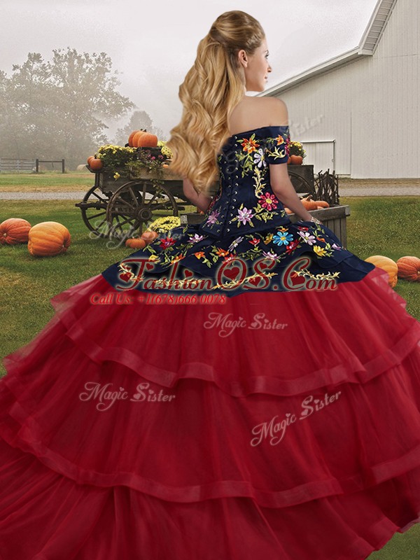 Edgy Brush Train Ball Gowns 15 Quinceanera Dress Fuchsia Off The Shoulder Tulle Sleeveless Lace Up