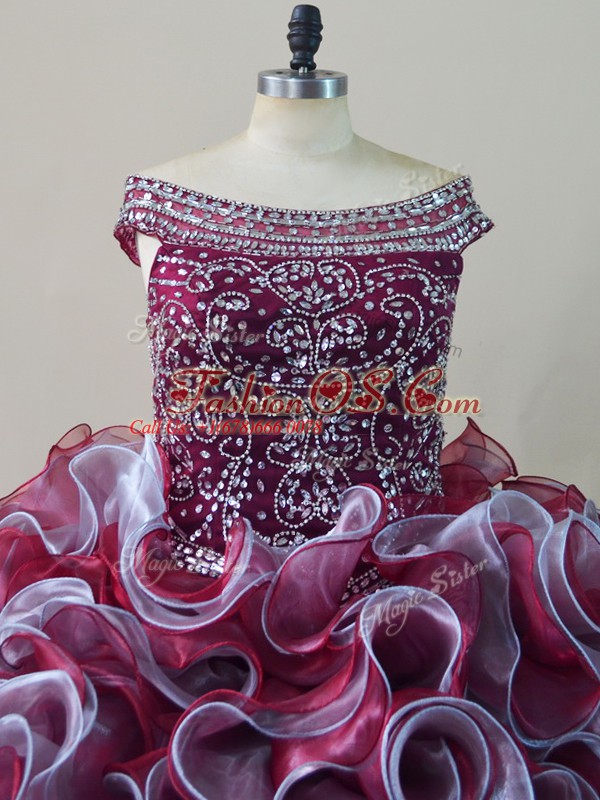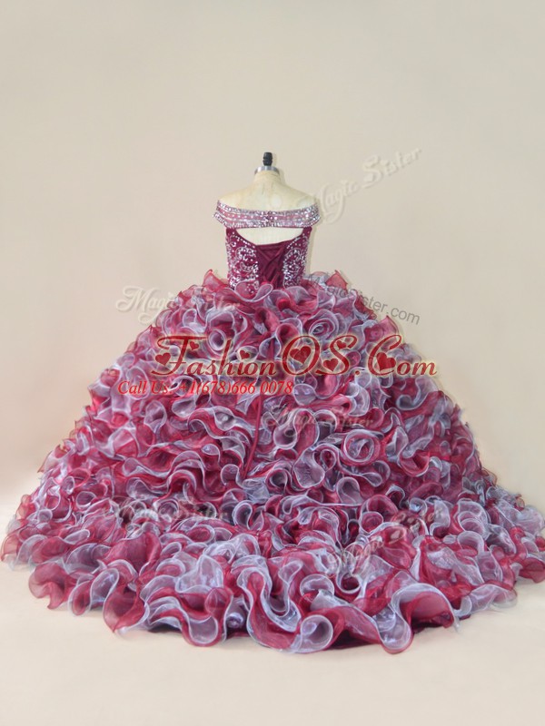 Beautiful Multi-color Lace Up Off The Shoulder Beading and Ruffles 15 Quinceanera Dress Organza Sleeveless Court Train