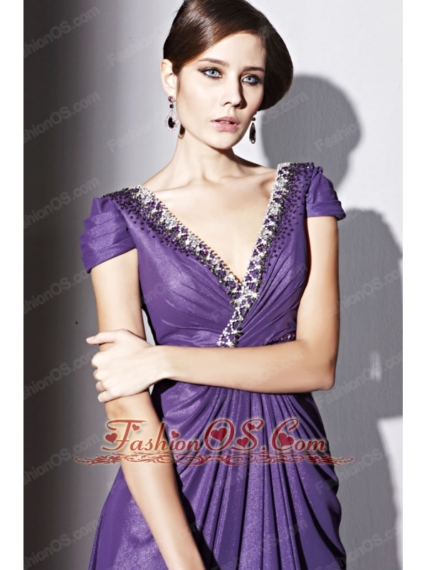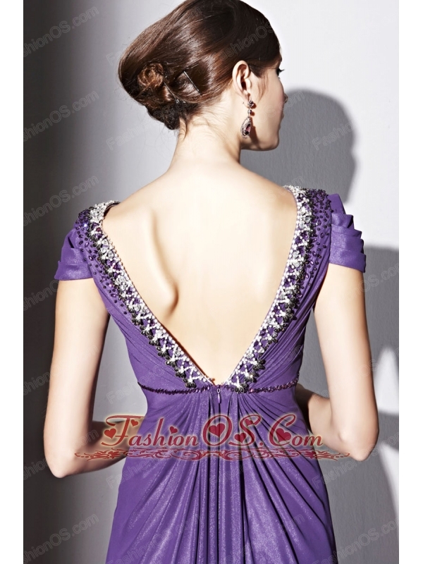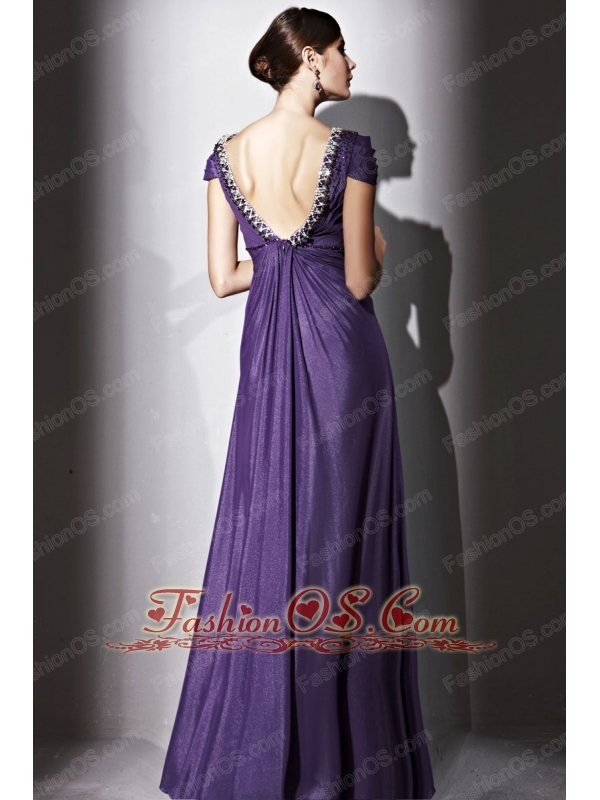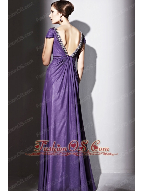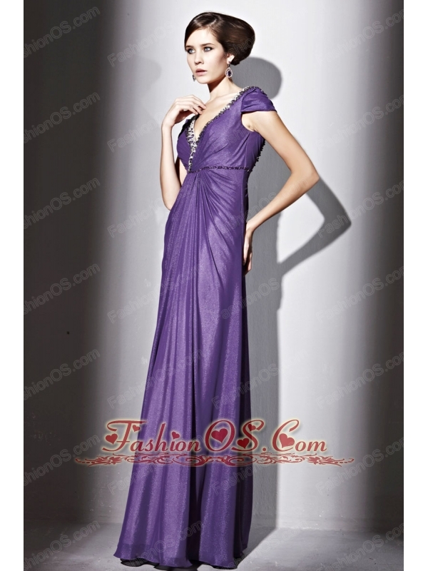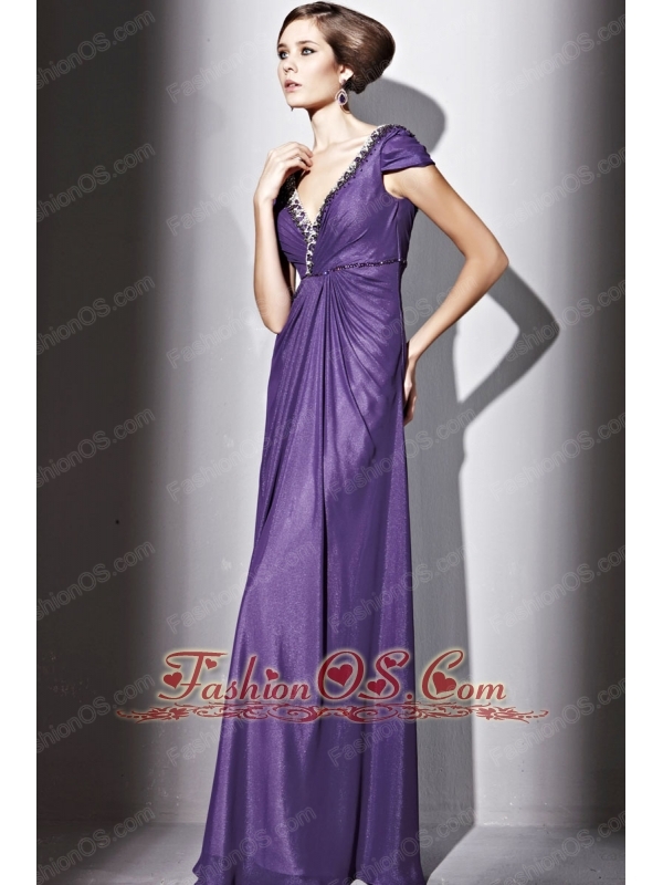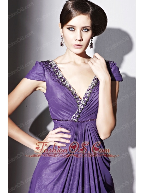 Purple Empire V-neck Floor-length Elastic Wove Satin and Chiffon Beading Prom / Evening Dress