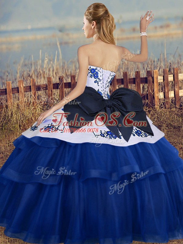 Floor Length Olive Green Quince Ball Gowns Tulle Sleeveless Embroidery and Bowknot