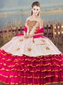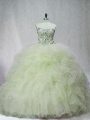 Wonderful Off The Shoulder Sleeveless Tulle Ball Gown Prom Dress Beading and Ruffles Lace Up