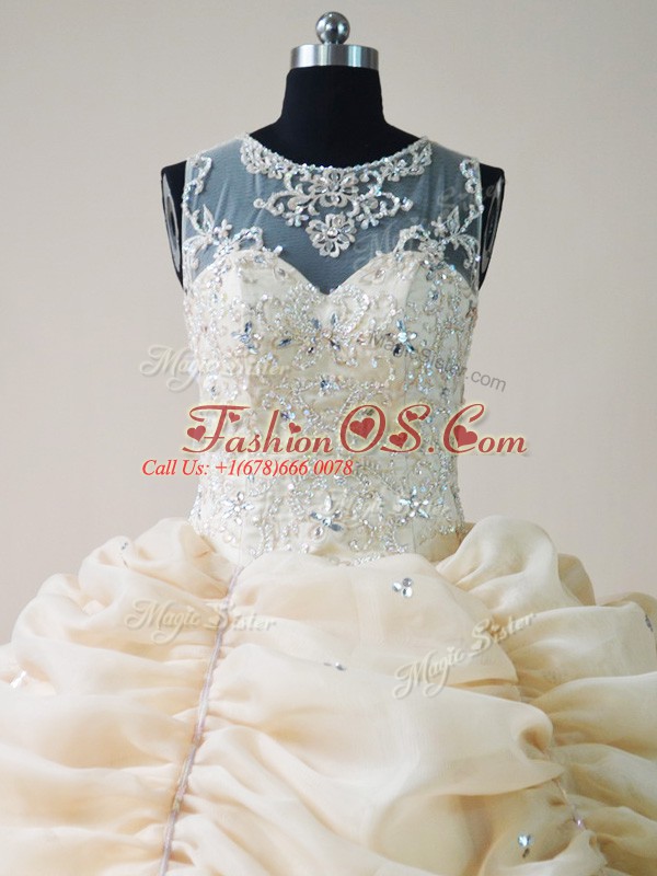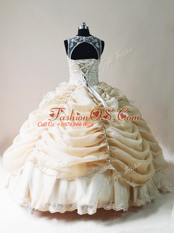 Stunning Sleeveless Floor Length Lace and Appliques Lace Up Quince Ball Gowns with Champagne