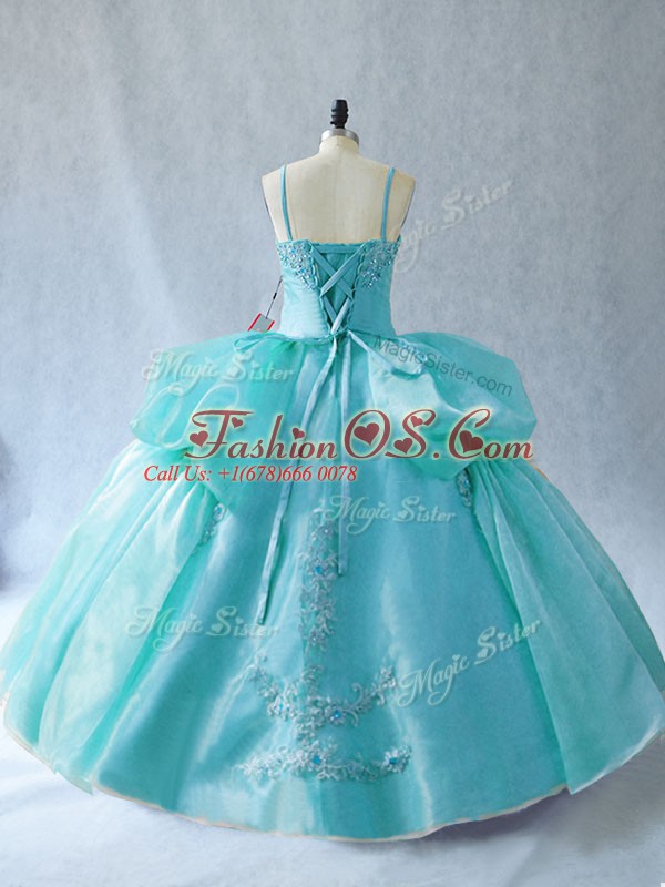 Floor Length Aqua Blue Sweet 16 Dress Organza Sleeveless Appliques