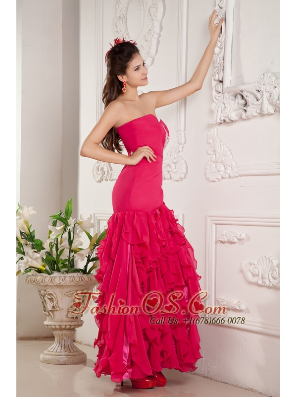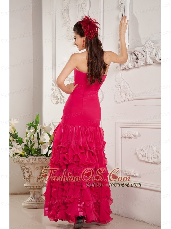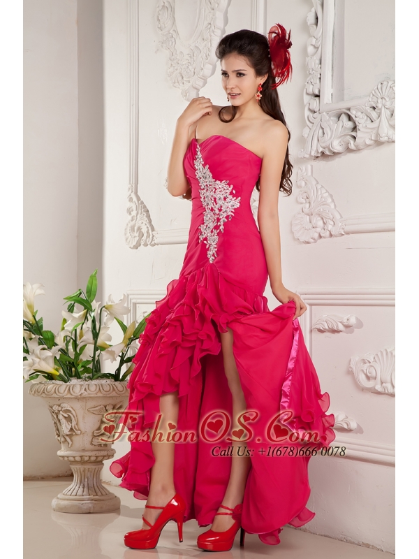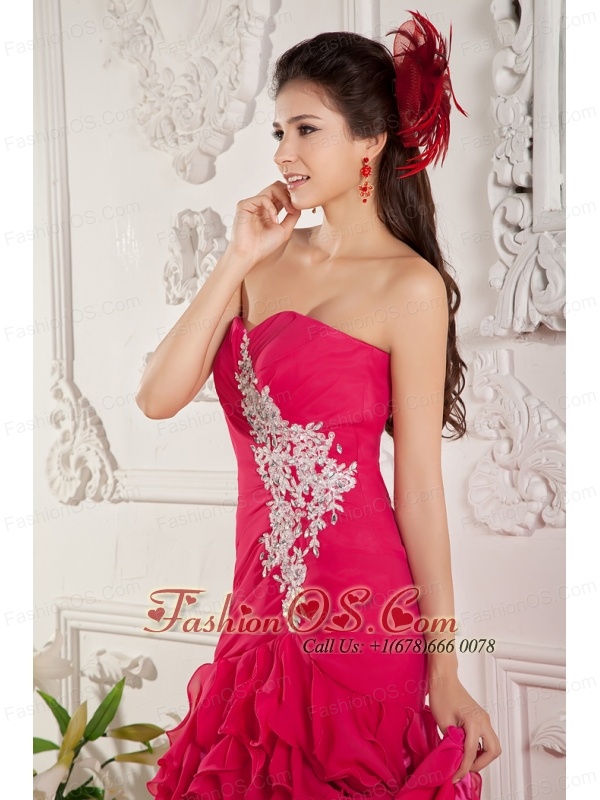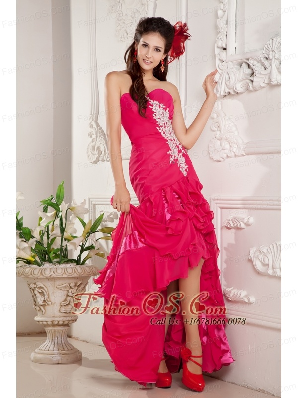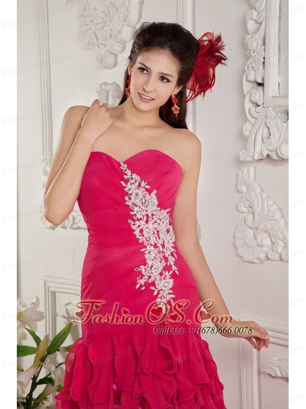 Cheap Hot Pink Empire Prom / Evening Dress Sweetheart Chiffon Appliques Ankle-length