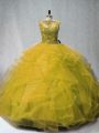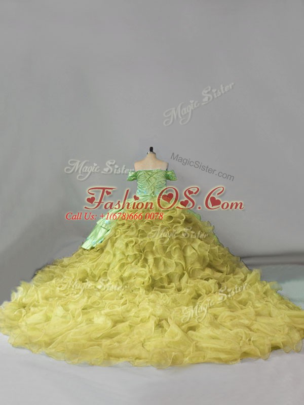 Luxury Sleeveless Chapel Train Lace Up Embroidery and Ruffles Vestidos de Quinceanera