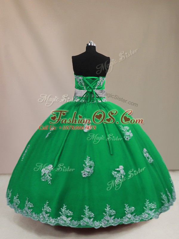 Floor Length Green Vestidos de Quinceanera Tulle Sleeveless Appliques