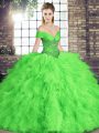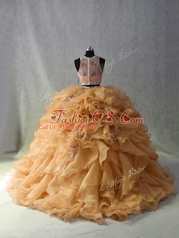 Ideal Sleeveless Brush Train Zipper Beading and Ruffles and Sequins Ball Gown Prom Dress