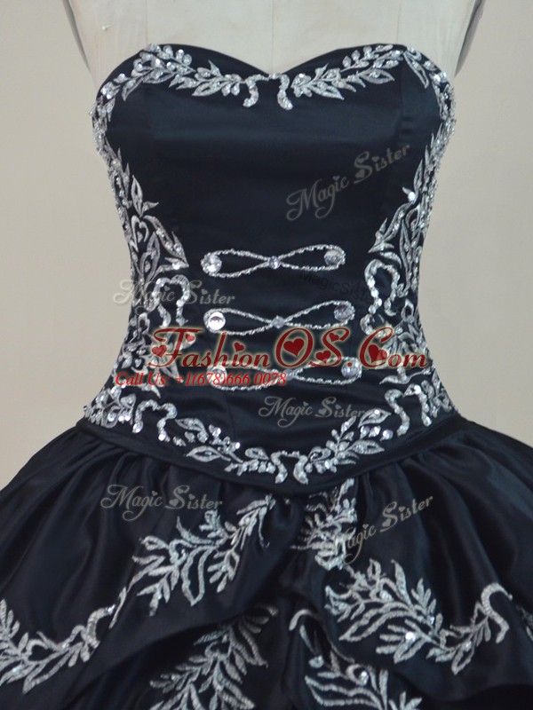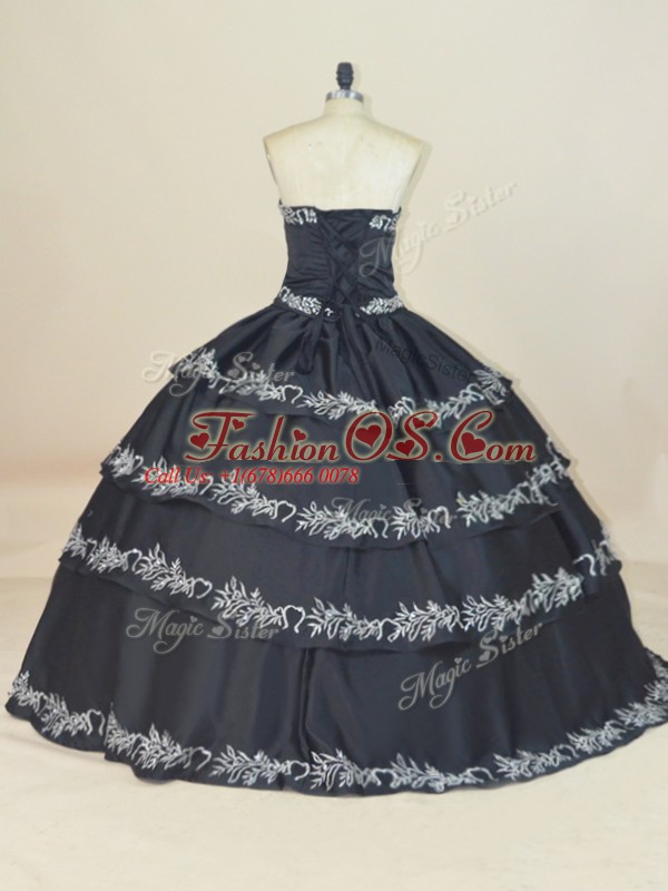 Black Satin Lace Up 15th Birthday Dress Sleeveless Floor Length Embroidery