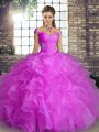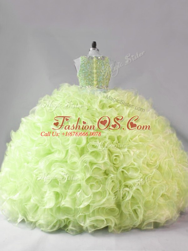 Yellow Green Ball Gowns Beading and Ruffles 15th Birthday Dress Zipper Fabric With Rolling Flowers Sleeveless Floor Length