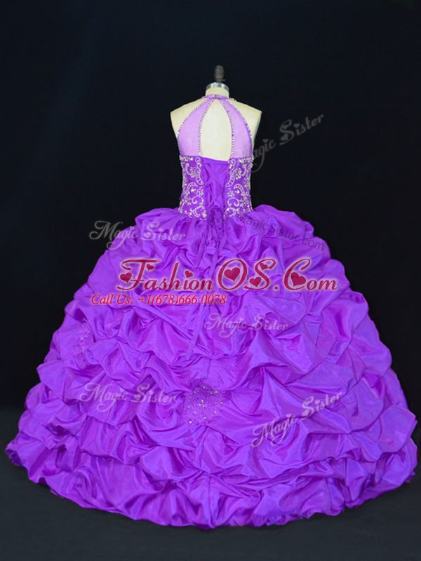 High-neck Sleeveless Lace Up 15 Quinceanera Dress Purple