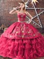Satin and Organza Sweetheart Sleeveless Lace Up Embroidery and Ruffled Layers Quinceanera Dress in Aqua Blue
