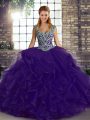 Sleeveless Beading Lace Up Quince Ball Gowns