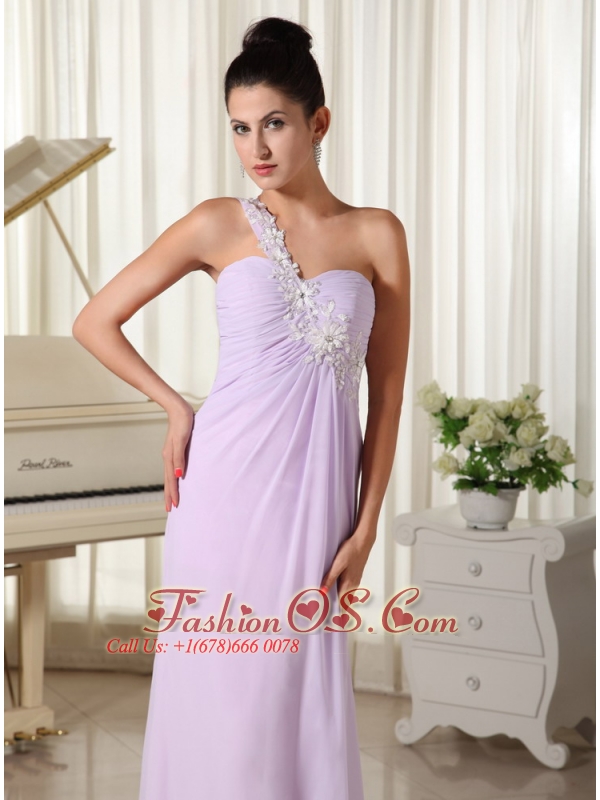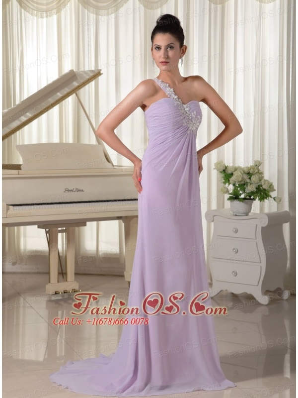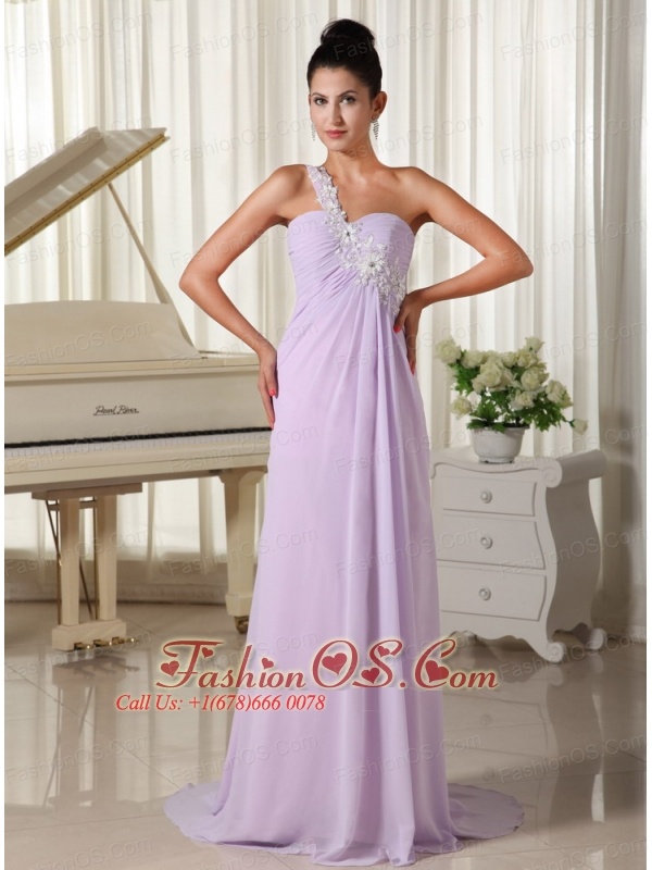 Appliques Decorate One Shoulder Lilac Brush Train For 2013 Prom Dress