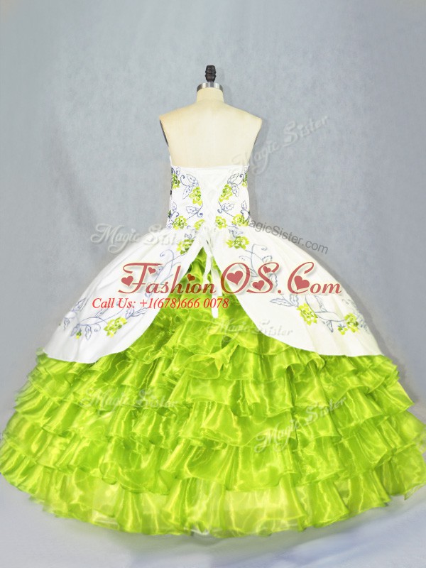 Fashion Sweetheart Sleeveless Organza Quinceanera Gown Embroidery and Ruffled Layers Lace Up