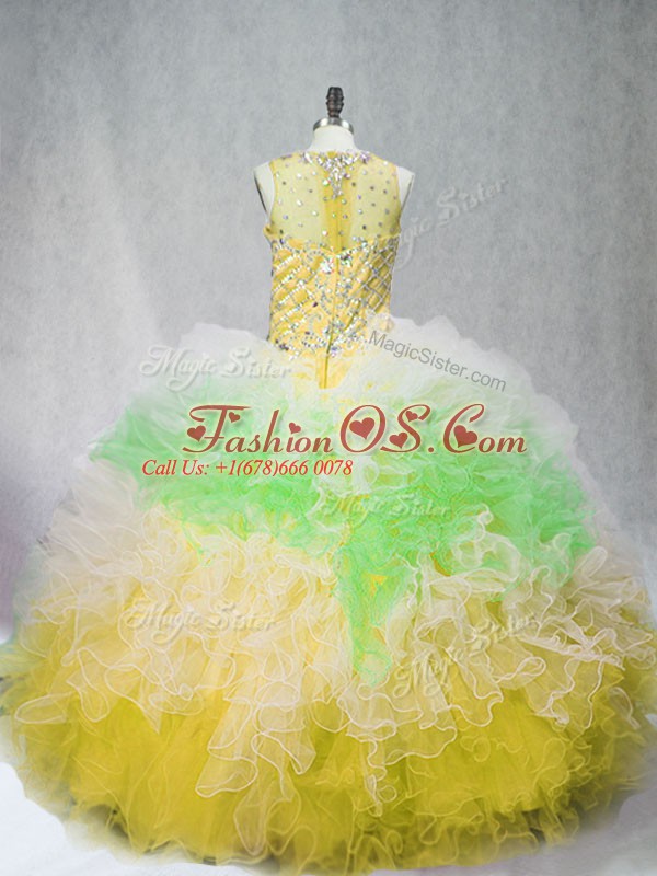 Custom Made Multi-color Sleeveless Floor Length Beading and Ruffles Zipper 15th Birthday Dress