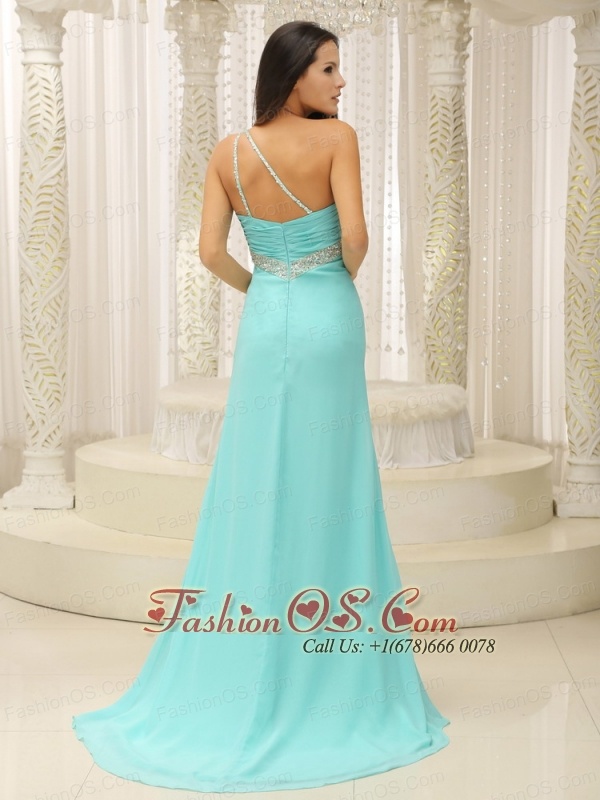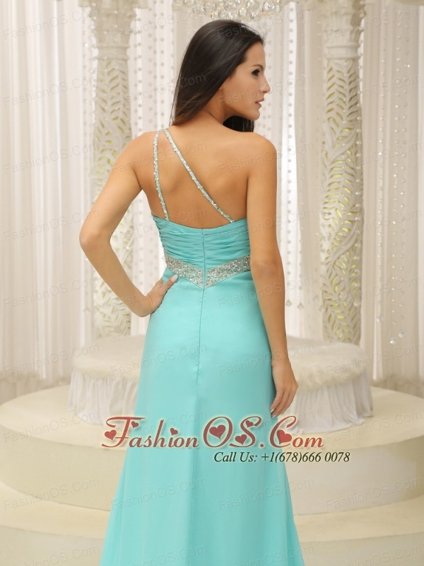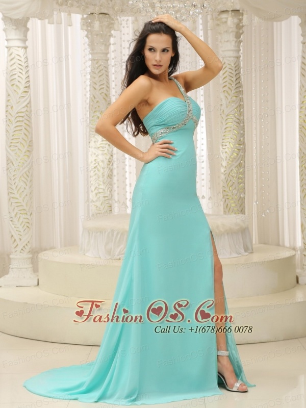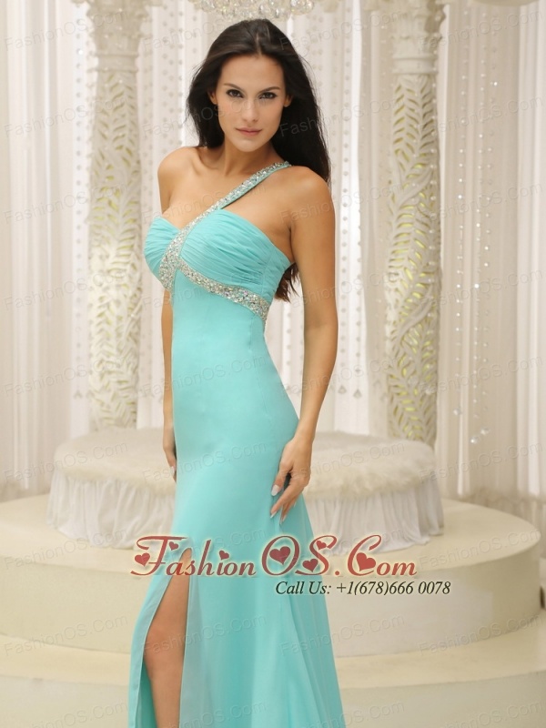 Beaded Decorate One Shoulder Ruched Bodice High Slit For Prom Dress Custom Made