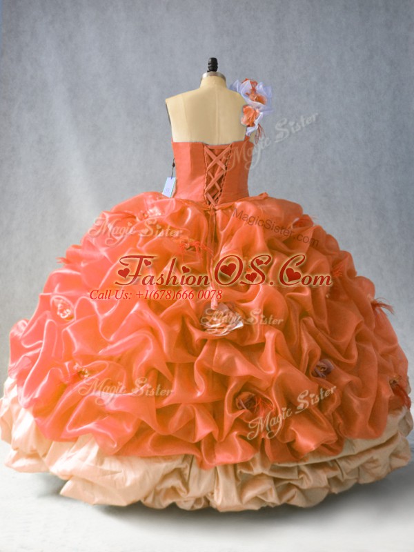 Elegant Floor Length Rust Red 15 Quinceanera Dress One Shoulder Sleeveless Lace Up