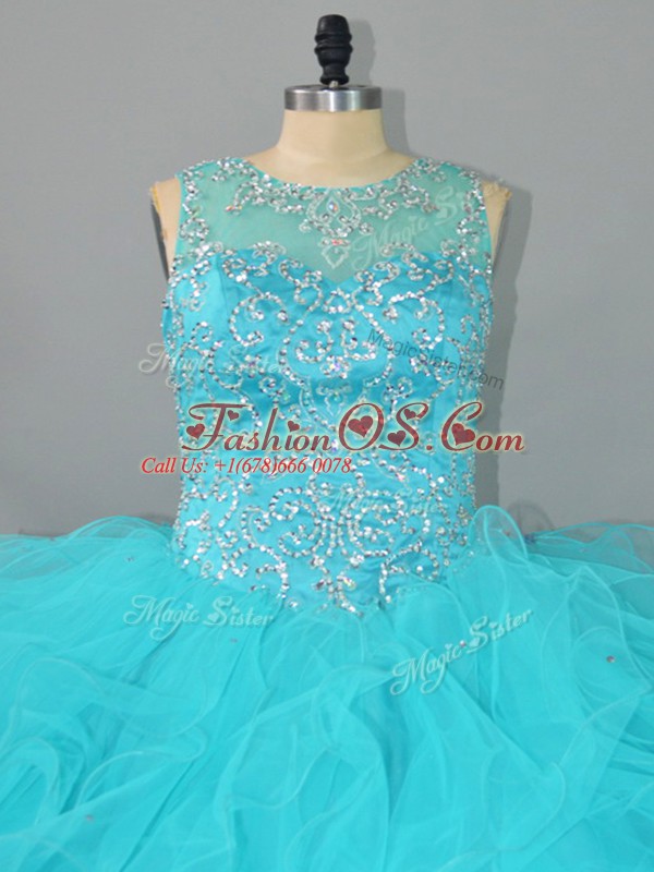 Floor Length Aqua Blue 15 Quinceanera Dress Scoop Sleeveless Lace Up