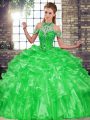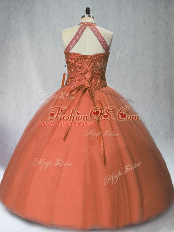Halter Top Sleeveless Tulle Quinceanera Dresses Beading Lace Up