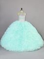 Fantastic Baby Blue Tulle Lace Up Scoop Sleeveless Floor Length Quinceanera Dress Beading