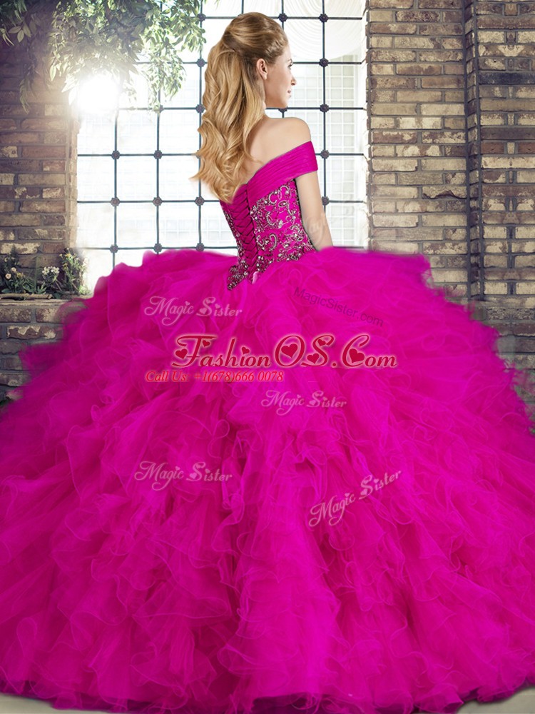 Low Price Floor Length Lace Up Sweet 16 Quinceanera Dress Blue for Military Ball and Sweet 16 and Quinceanera with Beading and Ruffles