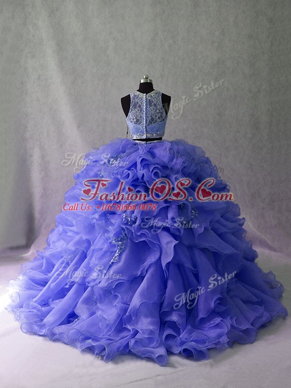 Smart Lavender Zipper Scoop Ruffles and Sequins Quince Ball Gowns Organza Sleeveless Brush Train