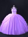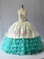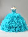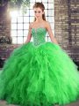 Sleeveless Court Train Lace Up Beading and Ruffled Layers Quince Ball Gowns